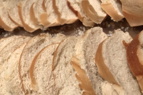 • Start by cutting the loaf of french bread into slices.