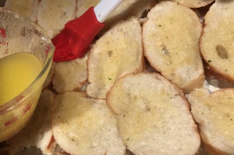 • Use a silicone brush to evenly distribute the butter mixture across the surface of each piece of bread.