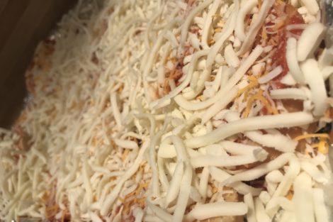 • Then, open up the Mozzarella cheese, and spread it across the surface of the Mexican cheddar jack cheese.