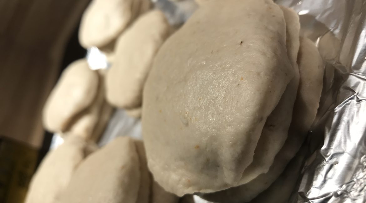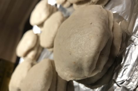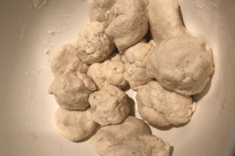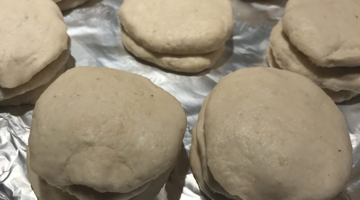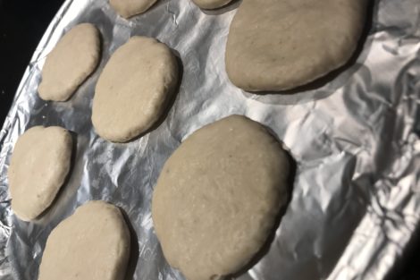 • Flatten these pieces out, and stack them in stacks of two or three flat pieces to make layered biscuits.