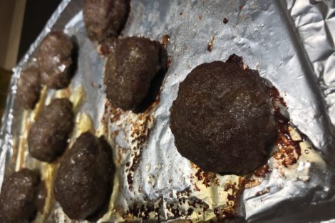 • Slice your sausage and place the slices on a pan covered in non-stick foil.