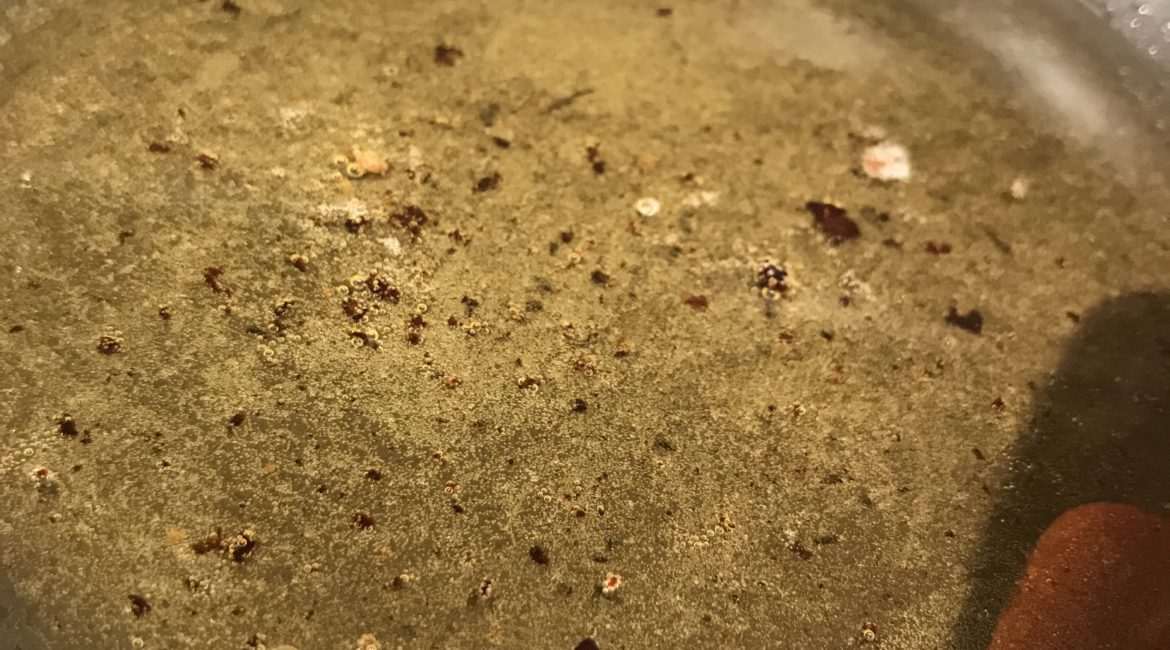 • When the sausage grease bubbles when you sprinkle a pinch of flour in it, that means it's ready for you to begin adding flour.