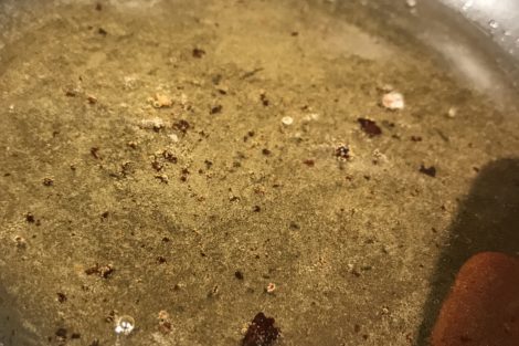 • Once the sausage is done, drain the grease into a saucepan over high heat.